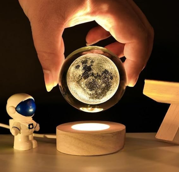 Educational and Decorative : Beyond its beauty as a decorative piece, the wooden base LED light with a 3D solar system crystal ball acts as an excellent educational tool. It can be used to introduce children to the solar system and ignite a passion for astronomy, blending educational value with aesthetic appeal. Artistic and Detailed Design : More than just a decorative item, the crystal glass art ornament is a piece of art. The glass sphere, engraved with a realistic 3D model of the solar system, impresses even the most discerning astronomy enthusiasts. The use of high-quality crystal ensures a more translucent and lustrous appearance than other materials, while advanced engraving technology guarantees that the names of the planets are clear, vivid, and three-dimensional. Versatile Night Lamp : The wood holder display stand night lamp is not only an artistic decoration but also serves as a captivating night light. Its detailed 3D solar system model and the warm glow from the LED base make it a unique addition to any room, offering both functionality and style in a single piece. Stunning 3D Solar System Model : This 3D inner carving night light features an astonishing 3D model of the solar system -engraved into a high-quality crystal ball. An excellent space-themed gift for both kids and adults, it can adorn bedrooms, living rooms, studies, or offices, adding a touch of the cosmos to any space. Gift for Astronomy Lovers : The glowing starry crystal is a perfect present for children, teenagers, and astronomy enthusiasts. Made from premium K9 crystal and utilizing advanced 3D engraving technology, this piece serves both as a decorative item and a unique night light, making it a stellar gift choice.